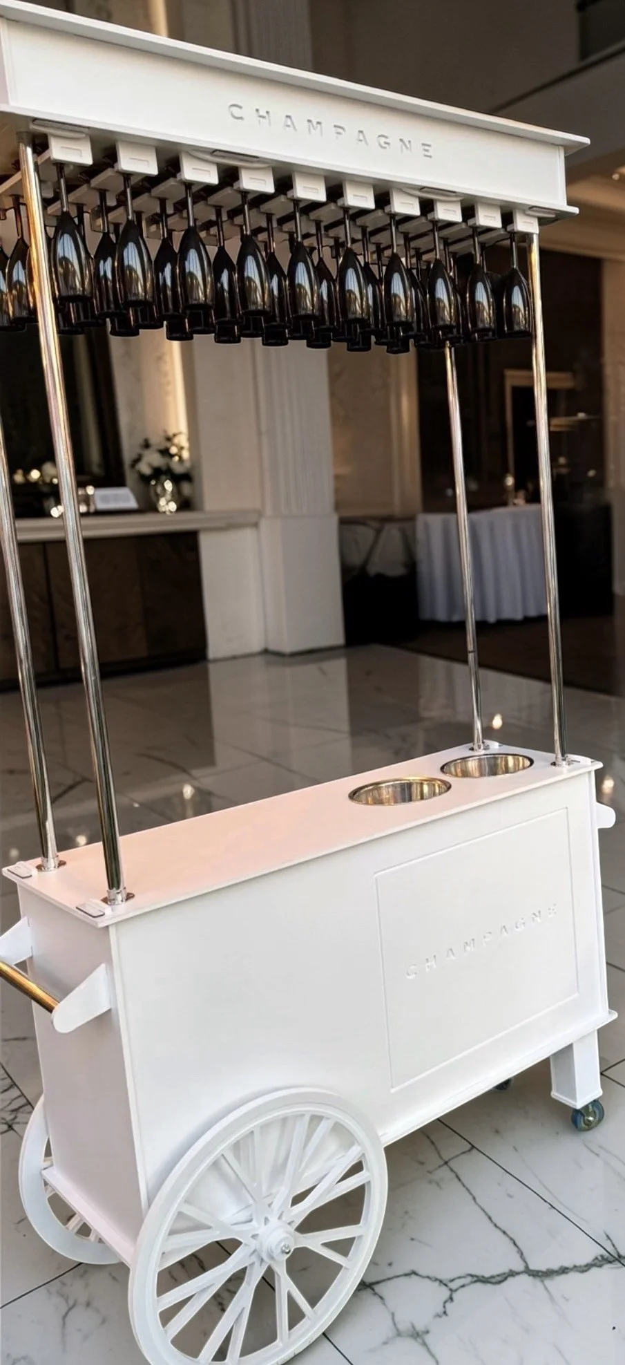 Luxury champagne carts, frozen drink machines, and treat displays for weddings, birthdays, and events.